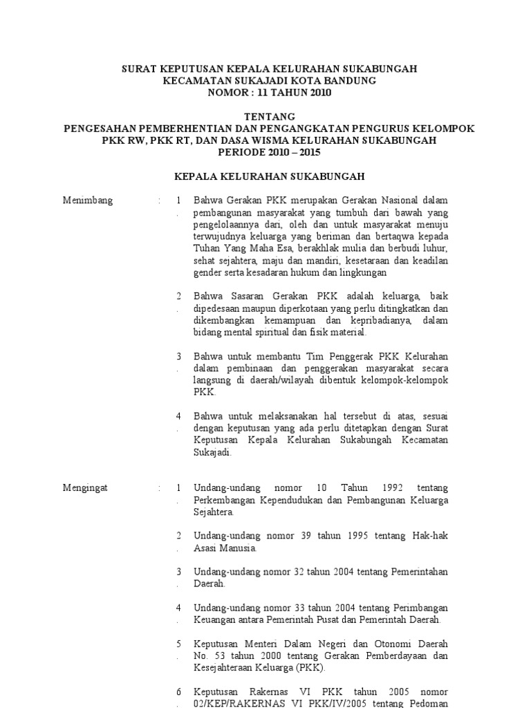Sk Pkk Kecamatan - 19 Contoh Surat Keputusan Up2k - Ketua tim penggerak pkk kecamatan gunungsitoli idanoi.. Text of sk kecamatan uraian tugas. .pkk kecamatan canduang 17 menghadiri acara pelayanan kb steril di kecamatan canduang. Sk camat singkawang timur no.8 tahun 2010 tentang penetapan pengurus tim penggerak pkk kecamatan singkawang timur. Administrator 02 november 2016 08:54:35 wib. Keputusan kepala desa cilayung kecamatan.