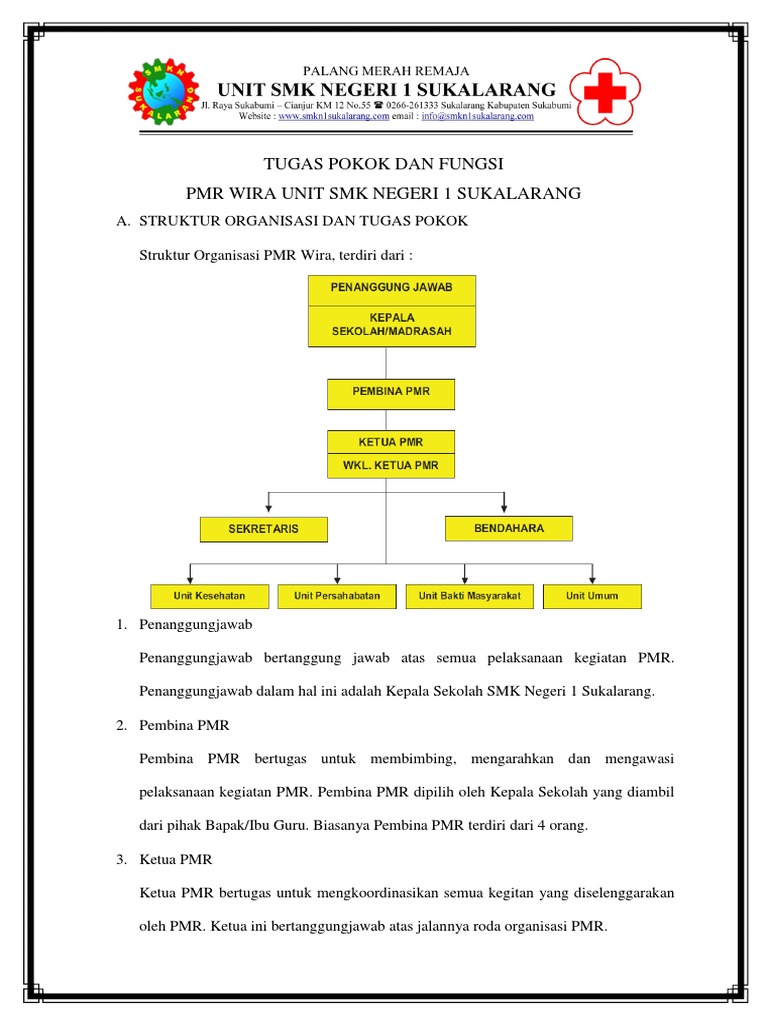 Struktur organisasi pmr wira unit smk negeri 1 sukalarang. Struktur organisasi pmr wira, terdiri dari : Struktur organisasi pmr wira unit sman 7 kediri. Pmr sman 7 kediri berhasil memperoleh kejuaraan sebagai berikut: Berbagi ke twitter berbagi ke facebook bagikan ke pinterest.